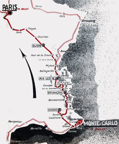 La Ronde de France s'était courue dans le sens Ouest-Est (Bordeaux-Grenoble), la "Course du Tour" comme la nomme le journal l'Équipe, va se disputer du Sud au Nord (Monaco-Paris), avec les grands cols alpins.