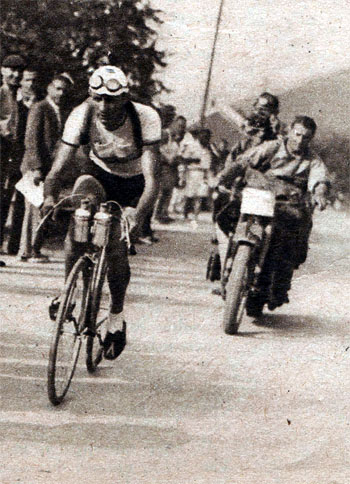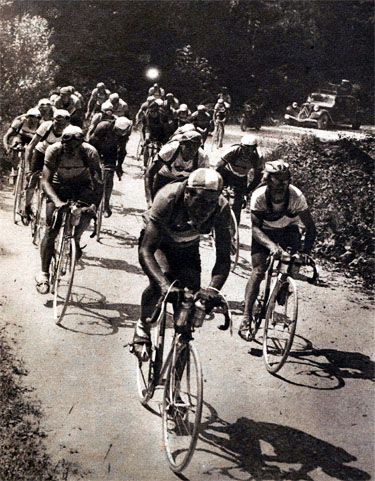 Derrière, le peloton est ici emmené par Teisseire et Robic.