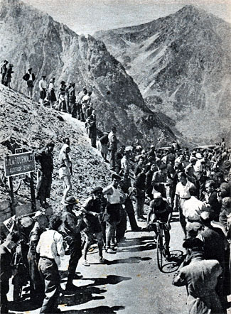 - Dans la deuxième partie de l'ascension, Tacca capitule et laisse passer le trio italien. Derrière les écarts grandissent dans des proportions inquiétantes pour les Français et Belges. Robic qui a fourni trop d'efforts perd des places, Galliussi s'effondre tandis que Martini et Cogan en regagnent. Devant on pense que les trois Italiens vont finir ensemble mais Volpi, assoiffé, perd du temps à chasser des bidons d'eau et Bertocchi commence à peiner. Dans les derniers hectomètres, Bresci sprinte. Au col du Tourmalet, voici la situation : Bresci seul en tête, à 16" Bertocchi, à 3'40" Volpi, à 5'12" Tacca, à 6'15" Martini, à 6'22" Cogan, à 8'24" Fachleitner, à 11'17" Dupont, à 11'45" Robic, à 14'30" Brambilla & Pontet, à 16'48" De Muer, à 17'25" Giauna, à 20' Van Verre & Introzzi, à 20'15" Cosson,... à 22'25" Lazaridès, à 25'20" Galliussi etc. Le dernier Macorig passe à 50'40".