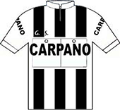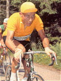 cèdent à la pression des marques.Anquetil, après une Vuelta ratée, doit faire face au jeune Poulidor qui, avec sa guigne habituelle, prend le départ avec un poignet dans le plâtre. Le champion du monde Rik Van Looy anime le début de Tour avant d'être contraint à l'abandon. A l'inverse de Gaul et Bahamontes, Anquetil est très régulier. En montagne, il écoeure ses adversaires qui ne parviennent pas à le distancer. Son plus coriace adversaire s'avère être Jozef Planckaert qui fait jeu égal dans la montagne et va longtemps porter le maillot jaune. Il ne le cédera qu'après le contre-la-montre de Lyon où Anquetil réalise une performance ahurissante. Rudi Altig a montré sa classe, surtout en début de Tour, et remporte le maillot vert. Le Normand gagne à 28 ans son 3ème Tour de France et rejoint Louison Bobet au palmarès des triple-vainqueurs. Raymond Poulidor sera certainement son futur challenger. Le parcours - Les partants - Les étapes - Les classements Histoire des maillots ![]() maillots : Jean-Louis Bey Étapes du 24 juin au 15 juillet 1962 1 Nancy - Spa, 253 km 2-1 Spa - Herentals, 147 km 2-2 Herentals, 23 km CLM par équipes 3 Bruxelles - Amiens, 210 km 4 Amiens - Le Havre, 196.5 km 5 Pont-l'Evêque - Saint-Malo, 215 km 6 Dinard - Brest, 235.5 km 7 Quimper - Saint-Nazaire, 201 km 8-1 Saint-Nazaire - Luçon, 155 km 8-2 Luçon - La Rochelle, 43 km CLM 9 La Rochelle - Bordeaux, 214 km 10 Bordeaux - Bayonne, 184.5 km 11 Bayonne - Pau, 155.5 km 12 Pau - Saint-Gaudens, 207.5 km 13 Luchon - Superbagnères, 18.5 km CLM 14 Luchon - Carcassonne, 215 km 15 Carcassonne - Montpellier, 196.5 km 16 Montpellier - Aix-en-Provence, 185 km 17 Aix-en-Provence - Juan-les-Pins, 201 km 18 Juan-les-Pins - Briançon, 241.5 km 19 Briançon - Aix-les-Bains, 204.5 km 20 Bourgoin - Lyon, 68 km CLM 21 Lyon - Nevers, 232 km 22 Pougues-les-Eaux - Paris, 271 km La petite histoire : - Prenant le départ avec une main plâtrée, Poulidor, néophyte de l'épreuve, perd plus de 8 mn au cours de la première étape. Il termine néanmoins troisième à Paris (à 10' 36") après avoir gagné l'étape de la Chartreuse. - Tom Simpson est le 1er Britannique à porter le maillot jaune. - Moyenne record sur cette édition : 37.306 km/h. Les nouveautés : - Un petit évènement : retour aux équipes de marque. - Apparition des cols de 4° catégorie. - Ascensions inédites : La Bonette-Restefonds. - Nouvelles villes étapes : Spa, Herentals, Pont-l'Évêque, Luçon, Bourgoin, Nevers / Pougues-les-Eaux Sponsors : - Prime maillot jaune journalière : SHELL BERRE - Prime journalière maillot vert : SOUPLEDUR - Étapes : sponsor à chaque étape. - Challenge international (équipes) : MARTINI - Grand Prix de la montagne : ST-RAPHAEL - Combativité : RENAULT - Malchance : - Progression classement : Chocolat POULAIN - Meilleur régional : FOCO ![]() ACCB-SAINT RAPHAEL-HELYETT Directeur sportif : Raphaël GÉMINIANI ![]() 1 ANQUETIL Jacques (Fra) 2 ALTIG Rudy (All) 3 ANNAERT Jean-Claude (Fra) 4 EVERAERT Pierre (Fra) 5 GELDERMANS Albertus (Hol) 6 GRACZYK Jean (Fra) 7 LE LAN Jean (Fra) 8 ROSTOLLAN Louis (Fra) 9 STABLINSKI Jean (Fra) 10 STOLKER Mies (Hol) IGNIS - MOSCHETTIERI Directeur sportif : Giovanni PROIETTI ![]() 11 ASSIRELLI Alberto (Ita) np.14° 12 BALDINI Ercole (Ita) 13 BENEDETTI Rino (Ita) 14 GUARGUAGLINI Carlo (Ita) 15 MARCALETTI Augusto (Ita) 16 MAZZACURATI Italo (Ita) 17 NENCINI Gastone (Ita) np.14° 18 PAMBIANCO Arnaldo (Ita) 19 TONUCCI Giuseppe (Ita) 20 ZORZI Giuseppe (Ita) ab.6° G.S. GHIGI Directeur sportif : Luciano PEZZI ![]() 21 BAFFI Pierino (Ita) 22 BONI Guido (Ita) 23 CIACCI Catullo (Ita) ab.9° 24 MAGNANI Franco (Ita) 25 MINIERI Mario (Ita) 26 RONCHINI Diego (Ita) ab.17° 27 SARTI Luigi (Ita) 28 SOLER Angelo (Esp) ab.5° 29 SUAREZ Antonio (Esp) ab.18° 30 ZANCHI Mario (Ita) hd.7° LIBERIA-GRAMMONT-CLÉMENT Directeur sportif : Bernard GAUTHIER ![]() 31 ANGLADE Henry (Fra) 32 DE CABOOTER Arthur (Bel) ab.14° 33 CARRARA Joseph (Fra) ab.12° 34 DELBERGHE Edouard (Fra) 35 DOTTO Jean (Fra) 36 FOUCHER André (Fra) 37 DE BOEVER Jaak (Bel) 38 MILESI Jean (Fra) 39 HUIART Marc (Fra) 40 SELIC Jean (Fra) G.S. GAZZOLA-FIORELLI-HUTCHINSON Directeur sportif : Pino VILLA ![]() 41 BRUNI Dino (Ita) 42 CESTARI Aurelio (Ita) 43 ERNZER Marcel (Lux) ab.12° 44 GAUL Charly (Lux) 45 MAGNI Oreste (Ita) ab.3° 46 MARTINATO Bruno (Ita) 47 MELE Luigi (Ita) ab.1° 48 RIMESSI Alessandro (Ita) ab.14° 49 MORESI Attilio (Sui) ab.1° 50 SABBADIN Alfredo (Ita) PELFORTH-SAUVAGE-LEJEUNE Directeur sportif : Maurice DE MUER ![]() 51 ENTHOVEN Dick (Hol) ab.18° 52 GROUSSARD Joseph (Fra) 53 GROUSSARD Georges (Fra) 54 FOURNIER René (Fra) ab.7° 55 LEFEBVRE Jean-Claude (Fra) hd.16° 56 MAHÉ François (Fra) 57 MATTIO Claude (Fra) ab.19° 58 MIELE Francesco (Ita) hd.7° 59 RAMSBOTTOM Alan (Gbr) 60 VERMEULIN Michel (Fra) ab.2a° CARPANO Directeur sportif : Ettore MILANO ![]() 61 AZZINI Carlo (Ita) 62 BAILETTI Antonio (Ita) 63 BARALE Germano (Ita) 64 COUVREUR Hilaire (Bel) 65 DEFILIPPIS Nino (Ita) ab.2a° 66 DESMET Gilbert 1 (Bel) 67 DI MARIA Arnaldo (Ita) np.8a° 68 GENTINA Giancarlo (Ita) ab.18° 69 SARTORE Giuseppe (Ita) 70 VAN AERDE Michel (Bel) ab.14° VC XII°-LEROUX-GITANE-DUNLOP Directeur sportif : Raymond LOUVIOT ![]() 71 DARRIGADE André (Fra) 72 FORESTIER Jean (Fra) 73 IGNOLIN Guy (Fra) 74 LEBAUBE Jean-Claude (Fra) 75 MALIEPAARD Bas (Hol) 76 MASTROTTO Raymond (Fra) 77 NOVAK Anatole (Fra) 78 SIMPSON Tom (Gbr) 79 THIELIN Gérard (Fra) hd.14° 80 WOLFSHOHL Rolf (All) WIELS-GROENE LEEUW Directeur sportif : Albert DE KIMPE ![]() 81 CLAES Jean-Baptiste (Bel) 82 DE MULDER Frans (Bel) ab.14° 83 DESMET Gilbert 2 (Bel) ab.14° 84 DOOM Daniel (Bel) 85 DE MIDDELEIR Robert (Bel) hd.14° 86 JUNKERMANN Hans (All) ab.14° 87 MESSELIS André (Bel) 88 PAUWELS Eddy (Bel) 89 PUSCHEL Dieter (All) 90 VANNITSEN Willy (Bel) MARGNAT-PALOMA-D'ALESSANDRO Directeur sportif : Raoul RÉMY ![]() 91 BAHAMONTES Federico (Esp) 92 GOASDUFF François (Fra) ab.