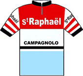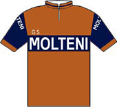 arrivées près du dernier col franchi.Disputé sous une météo morose, très bien conseillé par Géminiani, Anquetil jugule les assauts de Poulidor et surtout de Bahamontes dans les Pyrénées. Le Normand domine dans les Alpes et s'impose au Parc des Princes après avoir remporté deux étapes de montagne et les chronos de l'épreuve. C'est sa plus belle victoire. A l'issue du Tour, Anquetil déclare qu'il orientera sa saison 1964 sur le Giro. Le parcours - Les partants - Les étapes - Les classements Histoire des maillots ![]() carte et profils : journal l'Équipe et Le Parisien. maillots : Jean-Louis Bey Étapes du 23 juin au 14 juillet 1964 1 Paris/Nogent sur Marne - Épernay, 152.5 km 2-1 Reims - Jambes (Bel), 185.5 km 2-2 Jambes (Bel), 21.6 km CLM par équipes 3 Jambes (Bel) - Roubaix, 223.5 km 4 Roubaix - Rouen, 235.5 km 5 Rouen -Rennes, 285 km 6-1 Rennes - Angers, 118.5 km 6-2 Angers, 24.5 km CLM 7 Angers - Limoges, 236 km 8 Limoges - Bordeaux, 231.5 km 9 Bordeaux - Pau, 202 km 10 Pau - Bagnères de Bigorre, 148.5 km 11 Bagnères-de-Bigorre - Luchon, 131 km 12 Luchon - Toulouse, 172.5 km 13 Toulouse - Aurillac, 234 km 14 Aurillac - Saint-Étienne, 236.5 km 15 St Étienne - Grenoble, 174 km 16 Grenoble - Val d'Isère, 202 km 17 Val d'Isère - Chamonix, 227.5 km 18 Chamonix - Lons le Saunier, 225 km 19 Arbois - Besançon, 54.5 km CLM 20 Besançon - Troyes, 233.5 km 21 Troyes - Paris, 185.5 km La petite histoire : - Journée de repos : Aurillac le samedi 6 juillet. - Bonifications : 1' au premier de l'étape, 30" au deuxième. - Montagne : cols de 1ère cat. : 15, 12, 10, 8, 6, 5, 4 , 3, 2, 1 pts - cols de 2ème cat. : 10, 8, 6, 4, 3, 2, 1 pts - cols de 3ème cat. : 5, 4, 3, 2 et 1 pts. Les nouveautés : - Nouvelles villes étapes : Épernay, Jambes, Val d'Isère. - Nouvelles ascensions : Entremont et Val-d'Isère. Les sponsors : - Classement étapes et général, "maillot jaune" : rente journalière : Le Pantalon LE TORO - Classement individuel par points, "maillot vert" : non sponsorisé - Trophée du meilleur grimpeur : St-RAPHAËL - Challenge par équipes, casquettes jaunes : MARTINI - Dotation au coureur ayant gagné le plus de places à une étape : chocolats POULAIN - Combativité : DEXTRO ENERGEN - Amabilité : Oranges OUTSPAN ![]() SAINT RAPHAEL-GITANE Directeur sportif : Raphaël GÉMINIANI ![]() 1 ANQUETIL Jacques (Fra) 2 STABLINSKI Jean (Fra) ab.16° 3 ELLIOTT Seamus (Irl) 4 EVERAERT Pierre (Fra) 5 GELDERMANS Albertus (Hol) 6 IGNOLIN Guy (Fra) 7 LEBAUBE Jean-Claude (Fra) 8 NOVAK Anatole (Fra) 9 ROSTOLLAN Louis (Fra) hd.15° 10 THIELIN Gérard (Fra) MERCIER-B.P-HUTCHINSON Directeur sportif : Antonin MAGNE ![]() 11 BEUFFEUIL Pierre (Fra) 12 CAZALA Robert (Fra) 13 GAINCHE Jean (Fra) 14 HELLEMANS Alfons (Bel) 15 MELCKENBEECK Frans (Bel) np.9° 16 MILESI Jean (Fra) 17 POULIDOR Raymond (Fra) 18 LEBORGNE Simon (Fra) hd.3° 19 VAN SCHIL Victor (Bel) 20 VERHAEGEN August (Bel) FAEMA-FLANDRIA Directeur sportif : Brik SCHOTTE ![]() 21 BOCKLANT Willy (Bel) ab.16° 22 BRANDS Frans (Bel) 23 DESMET Armand (Bel) 24 FORÉ Noël (Bel) ab.10° 25 GOMEZ DEL MORAL Antonio (Esp) 26 ONGENAE Marcel (Bel) 27 PLANCKAERT Jozef (Bel) ab.12° 28 ROMAN Clément (Bel) ab.11° 29 SOLER Angelino (Esp) 30 SUAREZ Antonio (Esp) WIEL'S-GROENE LEEUW Directeur sportif : Albert DE KIMPE ![]() 31 BEHEYT Benoni (Bel) 32 DESMET Gilbert 1 (Bel) ab.17° 33 DESMET Gilbert 2 (Bel) 34 DOOM Daniel (Bel) ab.17° 35 JUNKERMANN Hans (All) 36 MESSELIS André (Bel) ab.16° 37 MOLENAERS Yvo (Bel) ab.17° 38 PAUWELS Eddy (Bel) 39 PUSCHEL Dieter (All) 40 VAN MEENEN René (Bel) él.16° MARGNAT-PALOMA-DUNLOP Directeur sportif : Raoul RÉMY ![]() 41 BAHAMONTES Federico (Esp) 42 CAMPILLO Juan (Esp) 43 DARRIGADE André (Fra) ab.16° 44 DOTTO Jean (Fra) 45 DUPONT Jean (Fra) hd.14° 46 GRACZYK Jean (Fra) 47 MATTIO Claude (Fra) 48 OTANO Luis (Esp) 49 THOMIN Joseph (Fra) 50 VELLY Joseph (Fra) ab.10° CARPANO Directeur sportif : Ettore MILANO ![]() 51 AZZINI Carlo (Ita) ab.16° 52 BAILETTI Antonio (Ita) 53 BALMAMION Franco (Ita) ab.3° 54 BARALE Germano (Ita) np.17° 55 BARIVIERA Vendramino (Ita) ab.8° 56 GIMMI Kurt (Sui) ab.17° 57 COGLIATI Ottavio (Ita) ab.3° 58 GENTINA Giancarlo (Ita) np.12° 59 GUERNIERI Loris (Ita) 60 SARTORE Giuseppe (Ita) ab.16° PELFORTH-SAUVAGE-LEJEUNE-WOLBER Directeur sportif : Maurice DE MUER ![]() 61 ANGLADE Henry (Fra) 62 EPAUD Guy (Fra) 63 ENTHOVEN Dick (Hol) 64 FOUCHER André (Fra) 65 GROUSSARD Georges (Fra) 66 GROUSSARD Joseph (Fra) 67 JANSSEN Jan (Hol) ab.10° 68 LACOMBE Roland (Fra) hd.10° 69 MAHE François (Fra) 70 RAMSBOTTOM Alan (Gbr) FERRYS Directeur sportif : Damian PLA SANCHIS ![]() 71 BERTRAN Antonio (Esp) 72 HERNANDEZ Rogelio (Esp) 73 KARMANY Antonio (Esp) 74 MANZANEQUE Fernando (Esp) 75 MARTIN Esteban (Esp) 76 MAS Gabriel (Esp) 77 PEREZ FRANCES Jose (Esp) 78 REY Raul (Esp) 79 SAN EMETERIO Julio (Esp) 80 CRUZ Emilio (Esp) G.B.C -LIBERTAS Directeur sportif : Guillaume DRIESSENS ![]() 81 AERENHOUTS Frans (Bel) 82 BAENS Roger (Bel) ab.10° 83 DERBOVEN Willy (Bel) 84 JANSSENS Ludo (Bel) 85 SCHROEDERS Willy (Bel) hd.11° 86 SORGELOOS Edgar (Bel) ab.11° 87 VAN GENEUGDEN Martin (Bel) 88 VAN LOOY Rik (Bel) 89 VAN TONGERLOO Guillaume (Bel) 90 ZILVERBERG Hubertus (Hol) np.16° I.B.A.C - MOLTENI Directeur sportif : Giorgio ALBANI ![]() 91 BATTISTINI Graziano (Ita) 92 FERRARI Danilo (Ita) ab.16° 93 FONTONA Renzo (Ita) 94 MINETTO Ernesto (Ita) hd.8° 95 OTTAVIANI Angel (Ita) hd.8° 96 FORNONI Giacomo (Ita) ab.8° 97 CARLESI Guido (Ita) np.14° 98 DANTE Peppino (Ita) hd.8° 99 FALASCHI Roberto (Ita) ab.16° 100 VELUCCHI Nello (Ita) ab.3° * 91 à 95 : IBAC, 96 à 100 : MOLTENI KAS Directeur sportif : Dalmacio LANGARICA ![]() 101 BARRUTIA Antonio (Esp) ab.11° 102 ECHEVERRIA Carlos (Esp) hd.3° 103 ELORZA Sebastian (Esp) 104 GABICA Francisco (Esp) 105 LOPEZ CANO José-Maria (Esp) hd.3° 106 PACHECO Miguel (Esp) 107 MARTIN PINERA Manuel (Esp) hd.3° 108 URIONA Valentin (Esp) 109 SANCHEZ CAMERO Juan (Esp