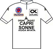 sur cette 68° édition du Tour. Quatre chronos individuels, deux chronos par équipes, la montagne dès le 5ème jour caractérisent ce Tour de France.Face à une opposition en petite forme, Phil Anderson se révèle au grand public en devenant le 1er Australien à revêtir le maillot jaune. Contrôlant facilement ses adversaires, Bernard Hinault finit par les assommer et remporte son 3ème Tour de France avec une marge importante. Le Tour 1981 établit deux nouveaux records : le nombre d'arrivants : 121 contre 104 en 1974 et la meilleure moyenne horaire : 37.844 km/h contre 37.306 en 1962 (Anquetil). Le parcours - Les partants - Les étapes - Les classements Histoire des maillots ![]() carte : L'Équipe et le parisien Libéré. profils : journal l'Equipe et Les Sports. maillots : Jean-Louis Bey Étapes du 25 juin au 19 juillet 1981 Prol. Nice, 5.8 km CLM 1 Nice - Nice, 97 km 2 Nice - Antibes - Nice, 40 km CLM par équipes 3 Nice - Martigues, 254 km 4 Martigues - Narbonne, 232 km 5 Narbonne - Carcassonne, 77.2 km CLM par équipes 6 Saint-Gaudens - Saint-Lary-Soulan, 117.5 km 7 Nay - Pau, 26.7 km CLM 8 Pau - Bordeaux, 227 km 9 Rochefort-sur-Mer - Nantes, 182 km 10 Nantes - Le Mans, 196.5 km 11 Le Mans - Aulnay-sous-Bois, 258.5 km 12 Compiègne - Roubaix, 246 km 13 Roubaix - Bruxelles (Bel), 105.5 km 14 Bruxelles (Bel) - Zolder (Bel), 133.5 km 15 Beringen (Bel) - Hasselt (Bel), 157 km 16 Mulhouse-Mulhouse, 38.5 km CLM 17 Besançon - Thonon-les-Bains, 231 km 18 Thonon- les-Bains - Morzine, 199.5 km 19 Morzine - L'Alpe-d'Huez, 230.5 km 20 Bourg-d'Oisans - Le Pleynet, 131 km 21 Veurey-Voroize - Saint-Priest, 117.5 km 22 Saint-Priest, 46.5 km CLM 23 Auxerre - Fontenay-sous-Bois, 207 km 24 Fontenay-sous-Bois - Paris/Champs Elysées, 186.8 km La petite histoire : - Phil Anderson premier Australien porteur du Maillot Jaune. Journée de repos : samedi 4 juillet à Nantes, lundi 13 juillet à Morzine Les nouveautés : - Retour aux bonifications aux arrivées des étapes de plaine. - Nouvelles villes étapes : Aulnay sous Bois, Le Pleynet-les-Sept-Laux, Veurey-Voroize, Nay, Zolder, Beringen, Hasselt. - Ascensions inédites : col de Joux-Verte, Le Pleynet-les-Sept-Laux, col de La Ramaz, col de Joux-Verte. Les barêmes : Maillot jaune : - étapes : 30", 20" et 10" sur les étapes 4, 8, 9, 10, 11, 15, 21 & 23. - étape volante : bonification de 30", 20" et 10" sur l' étape 3 - rush Talbot : bonifications de 12", 8" et 4" pour les étapes 4, 8, 9, 10, 11, 15, 21 & 23. Maillot vert : - étapes de plat : 35, 30, 26, 22, 18, 15, 12, 10, 8, 6, 5, ..., 1 pt pour les 15 premiers - étapes de montagne : 12, 11, 10, 9, 8, ..., 1 pt aux 12 premiers - étapes CLM : 10, 8, 6, 5, 4, 3, 2, 1 pt pour les 8 premiers - prologue : les 6 premiers : 6, 5, 4, 3, 2, 1 pt - Rush Talbot : 8, 5, 3 pts aux 3 premiers. Les sponsors : - Étapes : MERLIN-PLAGE - Classement général, "maillot jaune" : MIKO - Classement individuel par points, "maillot vert", et des équipes par points "casquettes vertes" : MICHELIN - Classement du meilleur grimpeur, "maillot à pois" : CAMPAGNOLO - Classement du meilleur jeune, "maillot blanc" : ALFA LAVAL - Classement "combiné" : TF1 - Sprints "rush" : TALBOT - Classement au temps par équipes : LE COQ SPORTIF - Le prix de la combativité : BANANIA - Divers : Équipier "BNP", Amabilité "TERA XYL", Fair-Play "WOLBER" ![]() TI RALEIGH-CREDA Directeur sportif : Peter POST & DE WEVER Jules ![]() 1 ZOETEMELK Joop (Hol) 2 FREULER Urs (Sui) ab.17° 3 HOSTE Frank (Bel) 4 KNETEMANN Gerrie (Hol) 5 LUBBERDING Henk (Hol) 6 PEETERS Ludo (Bel) 7 PRIEM Cees (Hol) ab.16° 8 VAN DEN HOEK Ad (Hol) 9 VAN DER VELDE Johan (Hol) 10 WIJNANDS Ad (Hol) ab.17° PEUGEOT-ESSO-MICHELIN Directeur sportif : Maurice DE MUER & Roland BERLAND ![]() 11 BERNAUDEAU Jean-René (Fra) 12 ANDERSON Phil (Aus) 13 BOSSIS Jacques (Fra) 14 BOURREAU Bernard (Fra) 15 DUCLOS-LASSALLE Gilbert (Fra) 16 JONES Graham (Gbr) 17 LAURENT Michel (Fra) 18 LEGEAY Roger (Fra) 19 LINARD Hubert (Fra) 20 PERRET Patrick (Fra) MIKO-MERCIER-VIVAGEL Directeur sportif : Jean-Pierre DANGUILLAUME & Maurice QUENTIN ![]() 21 MARTIN Raymond (Fra) 22 ANDERSEN Kim (Dan) ab.7° 23 CLÈRE Régis (Fra) 24 FRIOU Patrick (Fra) 25 GALLOPIN Joël (Fra) 26 GAUTHIER Jean-Louis (Fra) 27 LEBAUD Didier (Fra) hd.17° 28 LEVAVASSEUR Christian (Fra) 29 MATHIS Hubert (Fra) 30 SEZNEC Christian (Fra) WICKES-SPLENDOR-EUROP DECOR Directeur sportif : Albert DE KIMPE & Lucien LANDUYT ![]() 31 DE MUYNCK Johan (Bel) 32 BROERS Johnny (Hol) 33 COLMAN Rudi (Bel) 34 CRIQUIELION Claude (Bel) 35 KELLY Sean (Irl) 36 NILSSON Sven Ake (Sue) 37 PLANCKAERT Eddy (Bel) ab.17° 38 PLANCKAERT Walter (Bel) ab.17° 39 URBANY Eugène (Lux) 40 VAN CALSTER Guido (Bel) ab.19° SEM-FRANCE LOIRE-CAMPAGNOLO Directeur sportif : Jean DE GRIBALDY & Brik SCHOTTE ![]() 41 AGOSTINHO Joachim (Por) ab.20° 42 BEUCHERIE Serge (Fra) 43 CLERC Patrick (Fra) hd.13° 44 HOSOTTE Jean-Paul (Fra) 45 HOSOTTE Patrick (Fra) 46 MENDES Fernando (Por) ab.8° 47 MICHAUD Jacques (Fra) 48 MOERLEN Patrick (Sui) 49 ZWEIFEL Albert (Sui) 50 TINAZZI Marcel (Fra) LA REDOUTE-MOTOBECANE Directeur sportif : Philippe CRÉPEL & Jos BRAECKEVELDT ![]() 51 ALBAN Robert (Fra) 52 BAZZO Pierre (Fra) 53 DURANT Luc (Fra) 54 MARTINEZ Mariano (Esp) 55 PESCHEUX Jean-François (Fra) 56 SHERWEN Paul (Gbr) hd.17° 57 VALLET Bernard (Fra) 58 VANDENBROUCKE Jean-Luc (Bel) 59 VAN DEN HAUTE Ferdi (Bel) 60 VANOVERSCHELDE Didier (Fra) CAPRI SONNE-KOGA MIYATA Directeur sportif : Walter GODEFROOT & Patrick LEFEVERE ![]() 61 WILLEMS Daniel s(Bel) ab.23° 62 CLAES Ronny (Bel) 63 DELCROIX Ludo (Bel) 64 DE ROOY Theo (Hol) 65 JACOBS Joseph (Bel) 66 PEVENAGE Rudy (Bel) 67 VAN DE WIELE Eric (Bel) ab.6° 68 WAYENBERG Dirk (Bel) 69 WILLMANN Jostein (Nor) 70 WINNEN Peter (Hol) PUCH-WOLBER-CAMPAGNOLO Directeur sportif : Marcel BOISHARDY ![]() 71 THÉVENET Bernard (Fra) 72 ARNAUD Dominique (Fra) 73 CHASSANG Jean (Fra) 74 DE CARVALHO Alain (Fra) 75 HÉZARD Yves (Fra) 76 OSMONT Jacques (