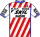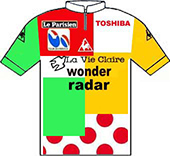 son leader, tout en étant son plus grand adversaire. L'Américain remporte d'ailleurs le dernier contre-la-montre.1985 c'est aussi le 1er Tour de France d'un certain Miguel Indurain. Le parcours - Les partants - Les étapes - Les classements Histoire des maillots ![]() profils : journal l'Equipe & Le Parisien maillots : Jean-Louis Bey Étapes du 28 juin au 21 juillet 1985 Prol. Plumelec, 6.8 km CLM 1 Vannes - Lanester, 256 km 2 Lorient - Vitré, 242 km 3 Vitré - Fougères, 73 km CLM par équipes 4 Fougères - Pont-Audemer, 239 km 5 Neufchatel-en-Bray - Tourcoing, 224 km 6 Tourcoing - Reims, 221.5 km 7 Reims - Nancy, 217.5 km 8 Sarrebourg - Strasbourg, 75 km CLM 9 Strasbourg - Épinal, 173.5 km 10 Épinal - Pontarlier, 204.5 km 11 Pontarlier - Morzine-Avoriaz, 195 km 12 Morzine - Lans-en-Vercors, 269 km 13 Villard-de-Lans, 38 km CLM 14 Autrans - Saint-Étienne, 179 km 15 Saint-Étienne - Aurillac, 237.5 km 16 Aurillac - Toulouse, 247 km 17 Toulouse - Luz-Ardiden, 209.5 km 18-1 Luz-Saint-Sauveur - Col d'Aubisque, 52.5 km 18-2 Laruns - Pau, 83.5 km 19 Pau - Bordeaux, 203 km 20 Montpon-Ménestérol - Limoges, 225 km 21 Circuit du Lac de Vassivière, 45.7 km CLM 22 Orléans - Paris, 196 km La petite histoire : - Bernard Hinault rejoint Anquetil et Merckx dans la légende avec cinq victoires dans le Tour de France. - LeMond signe au Lac de Vassivière la première victoire américaine dans le Tour. - Stephen Roche, premier Irlandais sur le podium. - A noter la 1ère participation de Miguel Indurain (100e du prologue, abandon 4è étape). Les nouveautés : - Apparition dans le Tour de nouveaux accessoires (pédales automatiques, roues lenticulaires). - Nouvelles villes étapes : Pont-Audemer, Vitré, Lanester, Fougères, Neufchâtel-en-Bray, Sarrebourg, Lans-en-Vercors, Villard-de-Lans, Autrans, Luz-Ardiden, Laruns, Montpon-Ménesterol. - Ascensions inédites : Luz-Ardiden, Champ du Feu. - 180 coureurs au départ, record absolu (ancien record : 170 coureurs en 1928, 1982, 1984). Jour de repos : 12 juillet à Grenoble. Les barêmes : Maillot jaune : - étape de plat : 30", 20" et 10" aux 3 premiers des étapes 1, 2, 4, 5, 6, 7, 9, 15, 16, 19 & 20. - étape volante : 30", 20" et 10" aux 3 premiers des étapes 4 & 11. - catch : 10", 6" et 3" à tous les "catch". Maillot vert (par points) : - barême unique identique pour toutes les étapes de plat, CLM et montagne : de 25 pts à 1 pt aux 25 premiers. Maillot à pois (montagne) : - Hors-catégorie (HC) : 40, 35, 30, 26, 22, 18, 16, 14, 12, 10, 8, 6, 4, 2 & 1 pt aux 15 premiers - 1ère catégorie : 30, 26, 22, 18, 14, 12, 10, 8, 6, 4, 2 & 1 pt aux 12 premiers - 2ème cat. : 20, 15, 12, 10, 8, 6, 4, 3, 2 & 1 pt aux 10 premiers - 3ème cat. : 7, 5, 4, 3, 2 & 1 pt aux 6 premiers - 4ème cat. : 4, 2 & 1 pt aux 3 premiers Maillot rouge (sprints "catch") : - de la 1ère à la 5ème étape : 3, 2 & 1 pt - de la 6ème à la 11ème étape : 6, 4 & 2 pts - de la 12ème à la 17ème étape : 9, 6 & 3 pts - de 18ème à la 22ème étape : 12, 8 & 4 pts Maillot blanc : - attribué au meilleur néophyte du Tour. Les sponsors : - Étapes : MERLIN-PLAGE - Classement général, "maillot jaune" : BANANIA - Classement individuel par points, "maillot vert", et des équipes par points : BP - Classement du meilleur grimpeur, "maillot à pois" : CAFÉ DE COLOMBIA - Classement du meilleur néophyte, "maillot blanc" : SUPER CROIX - Trophée du meilleur rouleur : LA REDOUTE - Sprints "catch", "maillot rouge" : CATCH - Combiné : TOSHIBA - Classement au temps par équipes : RYOBI ![]() RENAULT-ELF Directeur sportif : Cyrille GUIMARD & Bernard QUILFEN ![]() 1 CHEVALLIER Philippe (Fra) 2 GAIGNE Dominique (Fra) 3 GAYANT Martial (Fra) hd.15° 4 LAVAINNE Christophe (Fra) hd.15° 5 MADIOT Marc (Fra) 6 MADIOT Yvon (Fra) 7 MARIE Thierry (Fra) 8 MOTTET Charles (Fra) 9 POISSON Pascal (Fra) 10 ROUX Denis (Fra) LA VIE CLAIRE Directeur sportif : Paul KOECHLI & Maurice LE GUILLOUX ![]() 11 HINAULT Bernard (Fra) 12 ANDERSEN Kim (Dan) 13 ARNAUD Dominique (Fra) 14 BAUER Steve (Can) 15 GOMEZ Marc (Fra) 16 JOURDAN Christian (Fra) 17 LEMOND Greg (Usa) 18 RUTTIMANN Niki (Sui) 19 VALLET Bernard (Fra) 20 VIGNERON Alain (Fra) PEUGEOT-SHELL Directeur sportif : Roland BERLAND & Roger LEGEAY ![]() 21 MILLAR Robert (Gbr) 22 BRUN Frédéric (Fra) 23 CASTAING Francis (Fra) 24 DUCLOS-LASSALLE Gilbert (Fra) 25 FOREST Robert (Fra) 26 FREBERT Yvan (Fra) 27 LINARD Hubert (Fra) 28 PEIPER Alan (Aus) 29 SIMON Pascal (Fra) 30 YATES Sean (Gbr) SKIL-SEM Directeur sportif : Jean DE GRIBALDY & Christian RUMEAU ![]() 31 KELLY Sean (Irl) 32 BITTINGER René (Fra) 33 CARITOUX Eric (Fra) 34 GALLOPIN Guy (Fra) 35 GARDE Dominique (Fra) 36 MAS Gilles (Fra) 37 PELIER Joël (Fra) 38 POISSONNIER Philippe (Fra) 39 VAN MEER Jacques (Hol) 40 VICHOT Frédéric (Fra) REYNOLDS Directeur sportif : Jose Miguel ECHEVARRI & Eusebio UNZUE ![]() 41 AJA Enrique (Esp) 42 CHOZAS Eduardo (Esp) 43 GASTON Inaki (Esp) 44 GONZALEZ Eduardo (Esp) hd.12° 45 HERNANDEZ Carlos (Esp) 46 HERNANDEZ-UBEDA Jesus-Maria (Esp) 47 INDURAIN Miguel (Esp) ab.4° 48 LAGUIA José-Luis (Esp) ab.9° 49 NAVARRO Francisco (Esp) hd.4° 50 PRIETO Celestino (Esp) FAGOR Directeur sportif : Luis OCANA & Serge BEUCHERIE ![]() 51 MUNOZ Pedro (Esp) ab.15° 52 BAGOT Jean-Claude (Fra) 53 BAZZO Pierre (Fra) 54 BERNAUDEAU Jean-René (Fra) ab.12° 55 BIBOLLET Michel (Fra) 56 DE WOLF Fons (Bel) hd.Prol. 57 EARLEY Martin (Irl) 58 EMONDS Nico (Bel) ab.15° 59 LAURAIRE Philippe (Fra) 60 LEMARCHAND François (Fra) HITACHI-SUNAIR-SPLENDOR Directeur sportif : Albert DE KIMPE & Luc LANDUYT ![]() 61 CRIQUIELION Claude (Bel) 62 BIONDI Laurent (Fra) 63 DEVOS Hendrik (Bel) 64 DHAENENS Rudy (Bel) 65 MATTHIJS Rudy (Bel) 66 ROGIERS Rudy (Bel) 67 THURAU Dietrich (All) él.10° 68 TOELEN Patrick (Bel) 69 VANDENBRANDE Jean-Philippe (Bel) 70 WAMPERS Jean-Marie (Bel) PANASONIC-RALEIGH Directeur sportif : Peter POST & Jules DE WEVER ![]() 71 ANDERSON Phil (Aus) 72 DE KEULENAER Ludo (Bel) 73 DE ROOY The