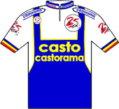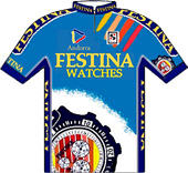 un finish impressionnant d'Ugrumov et de Pantani.Le parcours - Les partants - Les étapes - Les classements Histoire des maillots ![]() carte : Société du Tour de France profils : journal l'Equipe maillots : Jean-Louis Bey Étapes du 2 au 24 juillet 1994 Prol. Lille/Euralille, 7.2 km CLM 1 Lille/Euralille - Armentières, 234 km 2 Roubaix - Boulogne sur Mer, 203.5 km 3 Calais - Eurotunnel, 66.5 km CLM par équipes 4 Douvres (Gbr) - Brighton (Gbr), 204.5 km 5 Portsmouth (Gbr) - Portsmouth, 187 km 6 Cherbourg - Rennes, 270.5 km 7 Rennes - Futuroscope, 259.5 km 8 Poitiers - Trélissac, 218.5 km 9 Périgueux - Bergerac, 64 km CLM 10 Bergerac - Cahors, 160.5 km 11 Cahors - Lourdes/Hautacam, 263.5 km 12 Lourdes - Luz Ardiden, 204.5 km 13 Bagnères-de-Bigorre - Albi, 223 km 14 Castres - Montpellier, 202 km 15 Montpellier - Carpentras, 231 km 16 Valréas - L'Alpe-d'Huez, 224.5 km 17 Bourg-d'Oisans - Val Thorens, 149 km 18 Moutiers - Cluses, 174.5 km 19 Cluses - Morzine/Avoriaz, 47.5 km CLM 20 Morzine - Lac St Point, 208.5 km 21 Eurodisney - Paris/Champs Elysées, 175 km La petite histoire : - Le plus lourd et le plus grand du peloton remporte l'étape du Ventoux après y être passé au sommet en tête : Eros POLI. Les nouveautés : - Jean-Marie LEBLANC devient directeur du Tour de France. - Étape commémorative de la Bataille de Normandie : Cherbourg-Rennes avec un passage à Utah Beach, Sainte-Mère-l'Eglise et Saint-Lô pour le 50 ème anniversaire du débarquement. - La caravane se rend en Angleterre par le Tunnel sous la Manche. - 1 contre-la-montre par équipes Calais-Eurotunnel 66.5 km. - 3 contre-la-montre individuels : prologue Lille-Euralille 7.2 km, Périgueux-Bergerac 64 km, Cluses-Morzine Avoriaz 47.5 km. - 5 arrivées en altitude : Hautacam, Luz-Ardiden, L'Alpe-d'Huez, Val Thorens, Morzine-Avoriaz (clm) - Nouvelles villes étapes : Calais, Armentières, Dover, Brighton, Portsmouth, Trélissac, Cluses, Cahors. - Nouveaux cols et ascensions : Hautacam, Val Thorens, La Croix-Fry, Les Gets, Menée, Val Thorens. - Journée de repos : jeudi 14 juillet à Lourdes. Les classements : - de la 1ère à la 10ème étape, bonification de 20", 12" et 8" aux trois premiers - de la 1ère à la 10ème étape, bonification de 6", 4" et 2" aux trois premiers des sprints intermédiaires. - points étapes plat : 35, 30, 26, 24, 22, 20, 19, 18, ..., 1 aux 25 premiers - points étapes accidentées : 25, 22, 20, 18, 16, 15, 14, ..., 1 aux 20 premiers - points étapes montagne : 20, 17, 15, 13, 12, 10, 9, 8, ..., 1 aux 15 premiers - points étapes CLM : 15, 12, 10, 8, 6, 5, 4, 3, 2, 1 aux 10 premiers - points sprints intermédiaires : 6, 4 et 2 aux trois premiers des sprints intermédiaires. - points cols 4° cat. : 5, 3, 1 - points cols 3° cat. : 10, 7, 5, 3, 1 - points cols 2° cat. : 20, 15, 12, 10, 8, 6, 4, 3, 2, 1 - points cols 1° cat. : 30, 26, 22, 18, 14, 12, 10, 8, 6, 4, 2, 1 - points cols cat.HC : 40, 35, 30, 26, 22, 18, 16, 14, 12, 10, 8, 6, 4, 2, 1 Les sponsors : - Étapes : COCA COLA - Classement général, "maillot jaune" : CRÉDIT LYONNAIS - Classement individuel par points, "maillot vert" : PMU - Classement du meilleur grimpeur, "maillot à pois" : CHAMPION - Classement au temps par équipes "casquettes jaunes" : CRÉDIT LYONNAIS - Classement du meilleur jeune : / ![]() BANESTO Directeur sportif : Jose Miguel ECHEVARRI & Eusebio UNZUE ![]() 1 INDURAIN Miguel (Esp) 2 ALONSO Marino (Esp) ab.17° 3 APARICIO Vicente (Esp) 4 BERNARD Jean-François (Fra) 5 GONZALEZ ARRIETA Ramon (Esp) 6 MAURI Melchor (Esp) 7 NIJBOER Erwin (Hol) 8 RUÉ Gérard (Fra) 9 URIARTE José Ramon (Esp) MAPEI-CLAS Directeur sportif : Jesus SUAREZ CUEVAS & Martin Juan FERNANDEZ ![]() 11 ROMINGER Tony (Sui) ab.13° 12 BORTOLAMI Gianluca (Ita) 13 ECHAVE Federico (Esp) 14 EMONDS Nico (Bel) ab.14° 15 ESCARTIN Fernando (Esp) 16 GONZALEZ Arsenio (Esp) 17 MÜLLER Jörg (Sui) 18 OLANO Abraham (Esp) 19 UNZAGA Jon (Esp) np.15° GB-MG TECHNOGYM Directeur sportif : Giancarlo FERRETTI & Patrick LEFEVERE ![]() 21 MUSEEUW Johan (Bel) 22 BOMANS Carlo (Bel) 23 CASSANI Davide (Ita) 24 ELLI Alberto (Ita) 25 JAERMANN Rolf (Sui) 26 PEETERS Wilfried (Bel) ab.16° 27 SØRENSEN Rolf (Dan) 28 VANZELLA Flavio (Ita) 29 VONA Franco (Ita) MOTOROLA Directeur sportif : James OCHOWICZ & Hennie KUIPER ![]() 31 ARMSTRONG Lance (Usa) np.15° 32 ALCALA Raul (Mex) 33 ANDERSON Phil (Aus) 34 ANDREU Frankie (Usa) 35 BAUER Steve (Can) np.5° 36 DERNIES Michel (Bel) 37 MEJIA Alvaro (Col) 38 SWART Stephen (Nzl) 39 YATES Sean (Gbr) GEWISS-BALLAN Directeur sportif : Emmanuele BOMBINI & Paolo ROSOLA ![]() 41 RIIS Bjarne (Dan) 42 BOBRIK Vladislav (Rus) 43 BONTEMPI Guido (Ita) 44 BOTTARO Dario (Ita) 45 CENGHIALTA Bruno (Ita) 46 FURLAN Giorgio (Ita) 47 MINALI Nicola (Ita) ab.12° 48 UGRUMOV Piotr (Let) 49 ZAINA Enrico (Ita) CARRERA JEANS-TASSONI Directeur sportif : Sandro QUINTARELLI & Giuseppe MARTINELLI ![]() 51 CHIAPPUCCI Claudio (Ita) np.12° 52 ARTUNGHI Marco (Ita) ab.14° 53 BERTOLINI Alessandro (Ita) ab.12° 54 CHIESA Mario (Ita) 55 MANTOVAN Mario (Ita) ab.18° 56 PANTANI Marco (Ita) 57 POULNIKOV Vladimir (Ukr) 58 ROSSI Remo (Ita) 59 ZBERG Beat (Sui) ONCE Directeur sportif : Manolo SAIZ & Sebastian POZO ![]() 61 ZÜLLE Alex (Sui) 62 BREUKINK Erik (Hol) 63 DIAZ ZABALA Herminio (Esp) 64 DUFAUX Laurent (Sui) 65 JALABERT Laurent (Fra) np.2° 66 LEANIZBARRUTIA Alberto (Esp) 67 RINCON Oliverio (Col) ab.16° 68 SIERRA Roberto (Esp) np.14° 69 STEPHENS Neil (Aus) LAMPRE-PANARIA Directeur sportif : Pietro ALGERI & Maurizio PIOVANI ![]() 71 TONKOV Pavel (Rus) ab.14° 72 CONTI Roberto (Ita) 73 FARESIN Gianni (Ita) np.12° 74 GALLETTI Alessio (Ita) ab.16° 75 GONTCHENKOV Alexander (Ukr) np.2° 76 LIETTI Marco (Ita) ab.14° 77 SERPELLINI Marco (Ita) ab.16° 78 SVORADA Jan (Svq) 79 ZEN Marco (Ita) GAN Directeur sportif : Roger LEGEAY & Serge BEUCHERIE ![]() 81 DOJWA Jean-Philippe (Fra) ab.13° 82 BOARDMAN Christopher (Gbr) ab.11° 83 CAPELLE Christophe (Fra) ab.14° 84 COLOTT