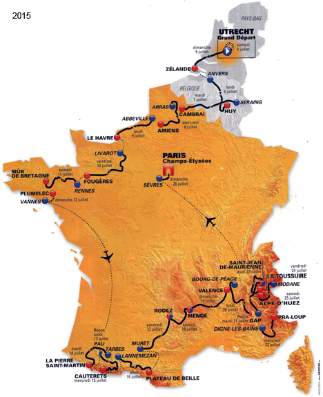 2015, le 102ème Tour de France comprendra 21 étapes pour une distance de 3 360