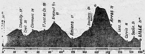 - Rien de notable au niveau stratégique n'a été noté jusqu'à Doullens, seul le Hollandais Van Vooren a tenté de partir auparavant à Chantilly, poursuivi par Mahé et quatre autres coureurs. Il comptera jusqu'à 1'25" d'avance et est rejoint à Clermont.