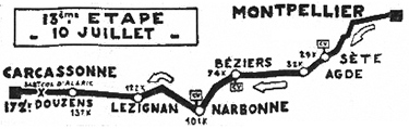 Teisseire qui mène près de Carcassonne. (photo Miroir-Sprint spécial du 12 juillet 1947)