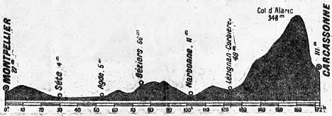 - Dans le col d'Alaric, à 30 km de l'arrivée, Teisseire démarre et dans sa roue ne restent bientôt que Schotte qui ne veut pas relayer permettant ainsi le retour de Impanis et Callens, trois hommes de l' "Escadron noir" contre le Français. Dès lors, Teisseire répond à tous les démarrages et entre en 3ème position sur la piste. A 200 mètres, il attaque et monte à la sortie du virage et profitant de la descente vient coiffer Callens sur la ligne et remporte sa 2ème victoire d'un souffle, gagnant ainsi 3 places au classement général.