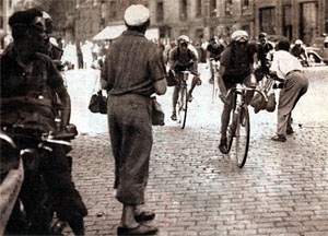 - Brambilla, Rossello, Schotte et le Bordelais Latorre ne relaie pas et finalement l'aide viendra de Cogan. Vietto et Cogan essaient même de démarrer à plusieurs reprises pour décrocher les "suiveurs". Effectivement Schotte, Latorre et Brambilla lâchent prise. Vietto et Cogan reviennent sur Ronconi mais Vietto malchanceux doit regonfler deux fois son boyau. A Differdange (km 284) : Ronconi, à 4'10" Brambilla, Cogan, Camellini, à 7'00" Latorre, Vietto. A Dudelange, km 300 : Ronconi, à 4'48" Cogan, Brambilla & Camellini, à 5'20" Vietto.