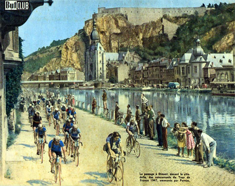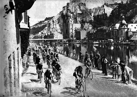 Le peloton le long de la Meuse à Dinant.