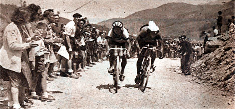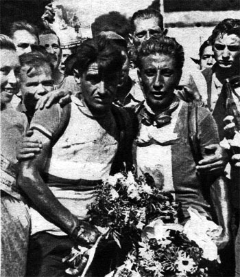 Vietto à gauche et Lazaridès à Digne. (photo Miroir Sprint n° 59 du 8 juillet 47)