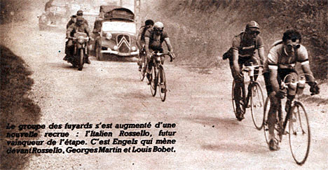 L'échappée décisive : Bobet et Martin sont rejoints d'abord par Engels puis Rossello.