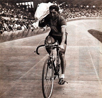 Tour d'honneur de Raoul Rémy sur le vélodrome de Bordeaux.