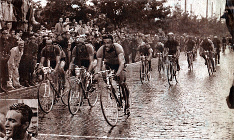 Sur le pavé mouillé de Liège, c'est le "Cadet" italien Adolfo Leoni qui s'impose. Bobet 3ème.