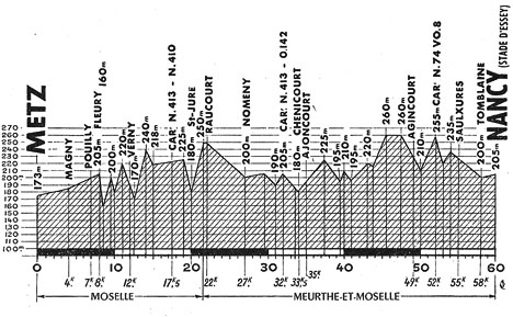 9h30 à 14h24 (Moselle) : Metz (km 0) - Magny (km 4) - Pouilly (km 7) - Fleury (km 8) - Verny (km 12) - Saint-Jure (km 20) - (Meurthe-et-Moselle) : Raucourt (km 22) - Nomény (km 27) - Chenicourt (km 33.5-ravitaillement) - Ajoncourt (km 35) - Agincourt (km 49) - Saulxures (km 55) - Tomblaine (km 58) - Nancy / Stade de l'Université (km 60).