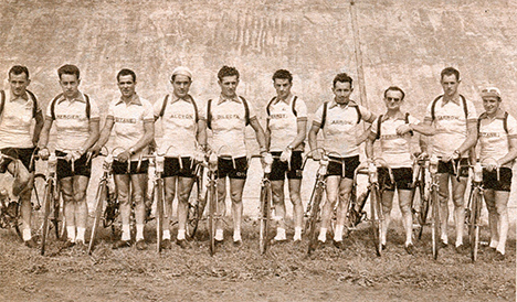 L'Équipe de l'Ouest au départ du Tour 1954. Robic 3ème à partir de la droite.