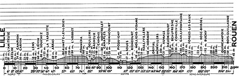 11h00 (Nord) : Lille/Pont de Wattignies (km 0) - Wattignies (km 4) - Seclin (km 8) - Camphin (km 13) - (Pas-de-Calais) : Carvin (km 16) - Lens (km 28-CV) - Liévin (km 32-CV) - Souchez (km 36) - Arras (km 47-CV) - Beaumetz-les-Loges (km 57) - L'Arbret (km 65) - Pommera (km 74) - (Somme) : Doullens (km 82-ravitaillement) - Candas (km 90) - Montrelet (km 93) - Canaples (km 96) - Vignacourt (km 101) - La Chaussée-Tirancourt (km 109) - Picquigny (km 110) - D336 Soues (km 117) - D69 Le Mesge (km 119) - Molliens-Vidame (km 127) - D211 Camp-en-Amiénois (km 131) - Hallivillers (km 133) - Hornoy (km 137) - Le Tronchoy-Boulainvilliers (km 140) - Orival (km 143) - Morvilliers (km 146) - (Seine-Inférieure) - Aumale (km 152) - GC9 Villers (km 155) - Haudricourt (km 157) - Beaufresnes (km 160) - Conteville (km 164) - Gaillefontaine (km 169) - N319 Forges-les-Eaux (km 177-ravitaillement) - Le Grand-Quesnoy (km 182) - Bosc-Bordel (km 188) - Buchy (km 192-CV) - Le Moulin d'Écalles - N28 Vert-Galant (km 204) - Quincampoix (km 208) - Isneauville (km 211) - Bois-Guillaume (km 214) - Carr GC43-GC121 (km 216) - Rouen/Bd. de la Marne (km 219).