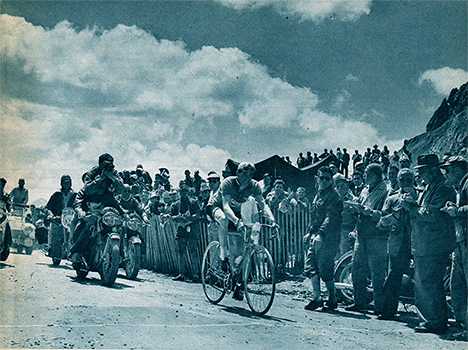 Charly Gaul a pris les choses en main et il survole la montée vers Sestrières où il va déposer Huot pour passer le sommet avec plus de 3 minutes d'avance !