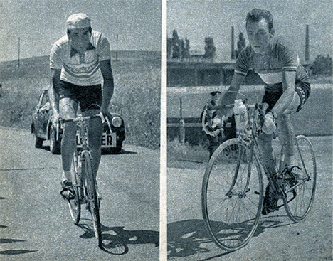A droite Charly Gaul qui ne réédite pas son premier contre-la-montre qu'il avait gagné aux Essarts. Il se classe 6ème