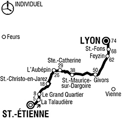 10h50 (Loire) : Saint-Étienne / stade (km 0) - La Talaudière (km 5) - Grand Quartier / Carr. D3-D23 (km 8) - D23 La Gâchet (km 15) - Saint-Christo-en-Jarez (près de) (km 15) - D23 Carr. D65 (km 20) - But d'Arpin (chrono-910 mètres) - (Rhône) : D97 L'Aubépin (km 26) - D63 Carr. D2 (km 29) - D2 Sainte-Catherine (km 29-ravitaillement) - Riverie (près de) (km 31) - Saint-Didier-sous-Riverie (km 35) - chrono (km 37) - Saint-Maurice (km 38) - Saint-Andéol (km 43) - La Pyramide (km 46) - Givors / entrée (km 49) - Pont de Givors (km 51-chrono) - (Isère) : D4 Flévieu (km 53) - Feyzin (km 62) - (Rhône) : Saint-Fons (Ouest) (km 58) - Lyon / Vélodrome (km 74).