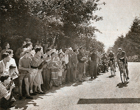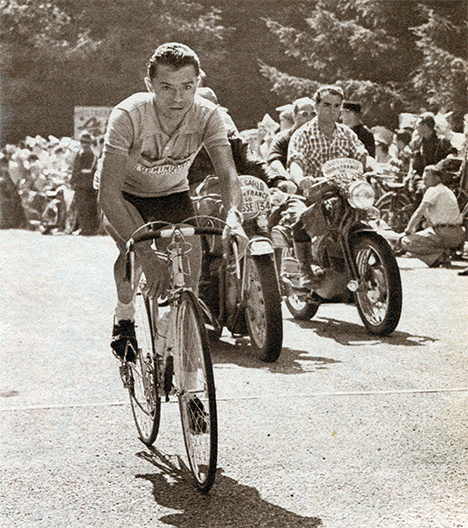 Charly Gaul passe en 2ème position (8 minutes après Hassenforder) le col du Beau Louis (ou de Beaulouis ?) et s'adjuge définitivement le trophée des grimpeurs. Bahamontes est derrière lui.