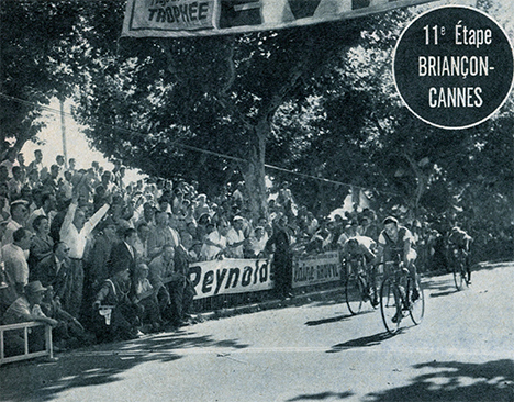 le col, les premiers coureurs se regroupent et Lauredi attaque avec dans son sillage Privat, Padovan & Wim Van Est. Padovan crève et il est rejoint par Christian. Sur la Croisette à Cannes, Privat qui n'a pas mené en tant qu'équipier du maillot jaune, s'impose facilement et remporte son deuxième bouquet devant Lauredi et Van Est. Christian et Padovan arrivent à 1'08" tandis que l'avant-garde du peloton est réglée à 1'54" par Picot qui joue le maillot vert (porté par Thomin).
