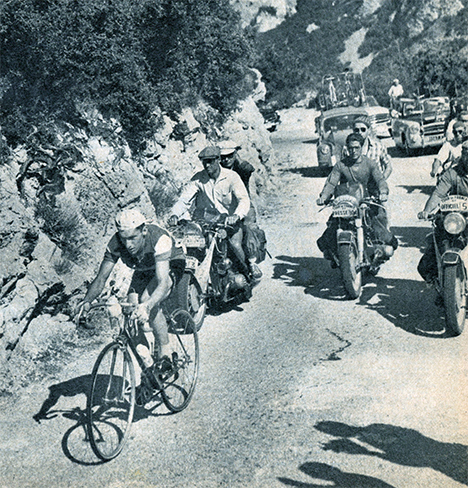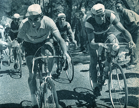 Dans le Mont-Faron, Anquetil ne quitte pas les avants-postes, le meilleur moyen de ne pas se laisser surprendre par Nencini à sa gauche.