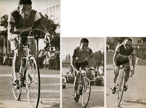 Jean Forestier (à gauche) ne concède que 12" et prend la 2ème place. Au centre, le rush de Lorono devant son public, et à droite Gilbert Bauvin qui a mené une partie de ce chrono.