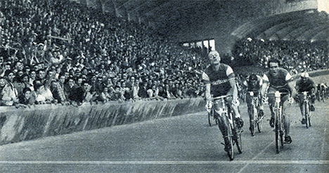 Dans un rush impressionnant, André Darrigade s'impose pour la deuxième place devant Padaovan, sur un vélodrome qu'il connait bien.