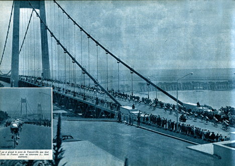 Le Tour de France franchit pour la 1ère fois ce magnifique ouvrage, le Pont de Tancarville, mis en service le 2 juillet 1959.