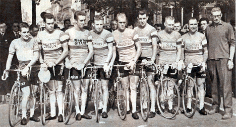L'équipe de Hollande au départ du Tour 1960. A gauche le champion de Hollande Damen.
