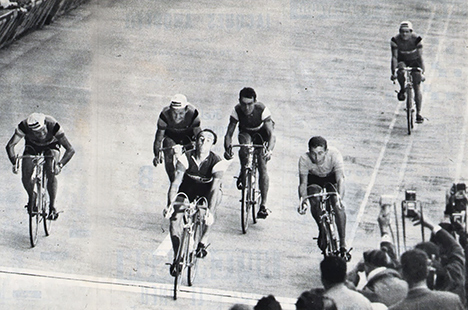 Robert Cazala s'impose au Parc-des-Princes devbant son leader Jacques Anuetil et Hoevenaers prend la 3ème place.