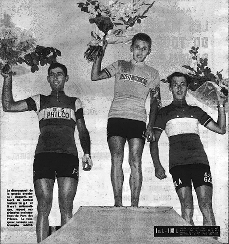 Le podium du Parc des Princes avec Anquetil, Carlesi et Gaul.