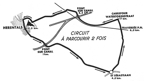 9h15 (BELGIQUE) : Spa (km 0) - N32 Theux (km 7) - Côte d'Oneux-Theux (km 9.5-GPM4) - Heusy (km 14) - N31 Verviers (km 17.5) - Montagne de l'Invasion (km 20-GPM4) - Petit-Rechain (km 21.5) - N27 Battice (km 26.5) - N3 Hervé (km 28-CV) - Blegny (km 33.5) - Trembleur (km 35.5) - Dalhem (km 39) - N39 Visé (km 43) - N18 Haccourt (km 45) - Roclenge-sur-Geer (km 51.5) - Boirs (km 54) - Glons (km56.5) - Sluse (km 59) - Mal (km 59.5) - Tongres (km 65-CV) - N15 Kortessem (km 74.5) - Immertingen (km 78.5) - N19 Alken (km 82) - Steroort (km 87.5) - Kermt (km 92.5) - N25 Lummen (km 99) - Linkhout (km 105) - Halen (km 107) - N2 Dienst (km 113.5) - N20 Veerle (km 125.5) - Carr. Zammel (km 135) - Punt (km 135.5) - Saint-Sebastiaan (km 140) - Carr. Watertorenstraat (km 142.5) - Herentals / Grote Markt (km 147).