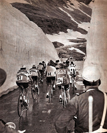 L'Iseran, tellement attendu, ne provoque pas la grande bagarre. Le groupe des favoris montent entre deux murs de glace et on voit Van Looy faire la causette aec Lebaube. Seuls Manzaneque et Fontona vont s'y montrer.