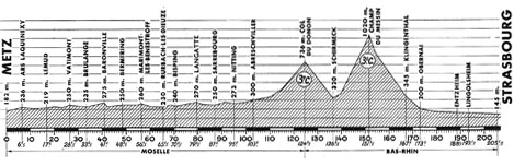 11h30 (Moselle) : Metz (km 0) - Grigy (km 3) - Ars-Laquenexy (km 6.5) - Courcelles-sur-Nied (km 11) - Lemud (km 17) - Remilly (km 20.5) - Aubecourt (km 23) - Han-sur-Nied (km 24) - Vatimont (km 26.5) - Arraincourt (km 32.5) - Brulange (km 33.5) - Destry (km 38.5) - Baronville (km 41) - Morhange (km 42) - Bermering (km 48.5) - Benestroff (km 54.5) - Marimont-les-Benestroff (km 56.5) - Carr. près Bassing (km 60) - Domnon-les-Dieuze (km 61.5) - Rorbach-les-Dieuze (km 65.5) - Angviller-les-Bisping (km 69) - Bisping (km 70.5) - Langatte (km 79.5) - Haut-Clocher (km 81) - Sarrebourg (km 87-ravitaillement) - Hesse (km 92) - Nitting (km 95) - Carr. Barville (km 97) - Abreschviller (km 103) - Col du Donon (km 124.5-GPM3) - (Bas-Rhin) : Grand-Fontaine (km 129) - Schirmeck (km 136.5) - La Broque (km 137.5) - Rothau (km 140) - Le Struthof (km 148) - Champ du Messin (km 161.5-GPM3) - La Rothlach (km 156) - Klingenthal (km 167) - Ottrot (km 169) - Obernai (km 173) - Innenheim (km 182.5) - Entzheim (km 188.5) - Lingolsheim (km 193.5-sprint) - Otswald (km 196.5) - Illkirch-Graffenstaden (km 199) - Strasbourg / Circuit de la Place de l'Étoile (km 205.5).