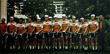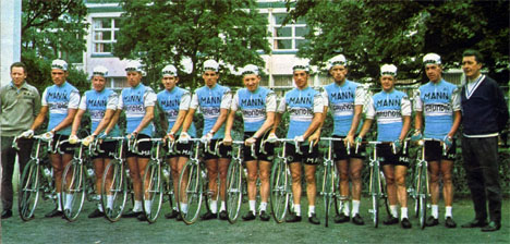 L'équipe MANN-GRUNDIG au départ de ce Tour (photo : Miroir du cyclisme n°116 de juillet 1969)
