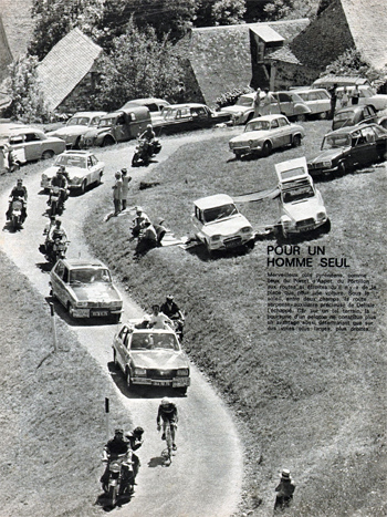 Seul sur la montagne, Delisle s'est échappé dans l'ascension du Portet d'Aspet (Miroir du cyclisme Sprint n° 117 - juillet-août 1969).