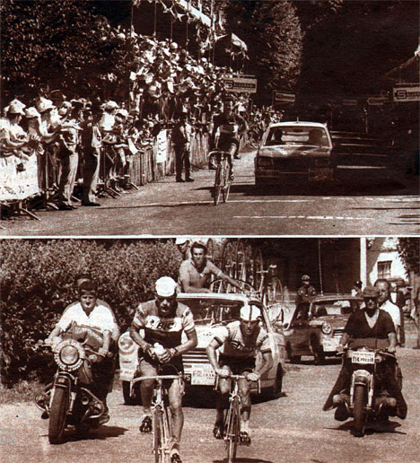Delisle s'impose le 14 juillet à Luchon (photo du haut). Janssen et Panizza en chasse depuis le pied du Portillon, ne pourront combler l'écart (Miroir-Sprint n° 1203A du 16 juillet 1969).