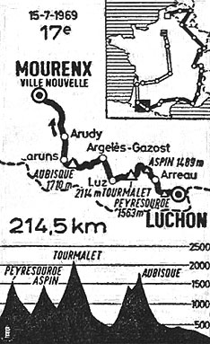 Sur les hauteurs du Tourmalet, les favoris (à l'exception de Gimondi) sont encore ensemble mais Merckx va attaquer en compagnie de son équipier, le grand Vandenbossche. Plus personne ne le reverra avant l'arrivée 140 kilomètres plus loin (Miroir-Sprint n° 1203B du 18 juillet 1969).
