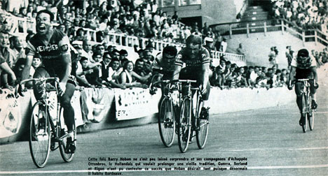 Barry Hoban s'impose... chez lui. En effet il habite à Bordeaux. En 1964, inconsolable, il avait été battu ici même par André Darrigade. C'est le jour de sa revanche (Miroir-Sprint n° 1203B du 18 juillet 1969).