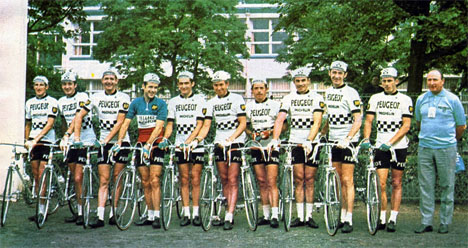L'équipe PEUGEOT au départ de ce Tour (photo : Miroir du cyclisme n°116 de juillet 1969)