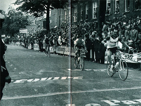 Julien Stevens remporte l'étape à Maastricht (Pays-Bas) et va endosser le maillot jaune. L'équipe Faema débute ce Tour de France en trombe ! (photo Miroir-Sprint n° 1201B du 4 juillet 1969).