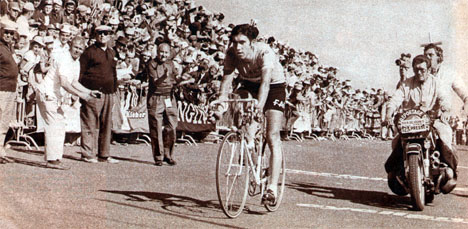 Pierre Matignon, épuisé mais vainqueur au Puy-de-Dôme... quelle sensation ! (photo Miroir-Sprint n° 1204 du 22 juillet 1969).