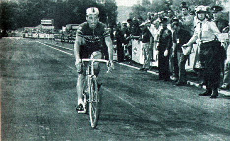 Epuisé mais heureux, Rik Van Looy s'impose sur la piste en cendrée de Nancy (photo Miroir-Sprint n° 1201B du 4 juillet 1969).