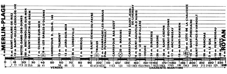 10h30 (Vendée) : Merlin-Plage (km 0) - Le Pissot (km 4.5) - St-Hilaire-de-Riez (km 7) - St-Gilles-Croix-de-Vie (km 11) - Notre-Dame-des-Dunes (km 17.5) - Brétignolles-sur-Mer (km 22) - St-Martin-de-Brem (km 25.5) - Olonne-s-Mer (km 36) - D32 Sables-d'Olonne (km 41-sprint) - N149 - N149 Talmont (km 58) - D21 Jard-sur-Mer (km 65) - St-Vincent sur Jard (km 67) - Longeville (km 72) - D70 Angles (km 79.5) - Moricq (km 81) - Grues (km 89) - St-Denis-du-Payré (km 92) - Triaize (km 97.5-sprint) - La Croix (km 102.5) - Champagne-les-Marais (km 103.5) - Puyravault (près de) (km 106.5) - (Charente-Maritime) : Carr. Bas-Bizet (km 115.5) - D105 Marans (km 123-ravitaillement) - D114 St-Jean-de-Livers (km 133) - St-Sauveur-d'Aunis (km 139.5) - Le Gué-d'Alleré (km 143.5) - Vouhé (km 149.5) - Surgères (km 156) - D114 Vandré (km 162.5) - Saint-Crépin (km 169.5) - Tonnay-Boutonne (km 174) - Archingeay (km 178.5) - Saint-Savinien (km 186) - Carr. La Motte (km 191) - Frichebois (km 192) - Côte de la Chaussée (km 194,5-GPM 4) - D122 Saint-Porchaire (km 198) - St-Sulpice d'Arnoult (km 204.5) - Nancras (km 213) - Le Gua (km 218.5) - Près l'Eguielle (km 223) - Fontbedeau (km 225) - St-Suilpice-de-Royan (km 228.5) - Jaffe (km 230.5) - Bernon (km 232) - Royan / Front de mer (km 236).