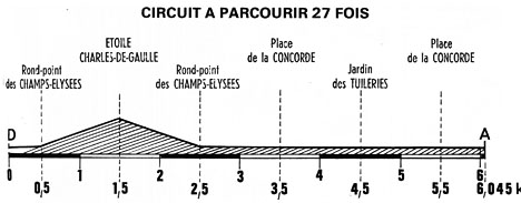 Circuit de 6.050 km à parcourir 27 fois. "Point-chaud" placé au km 97.