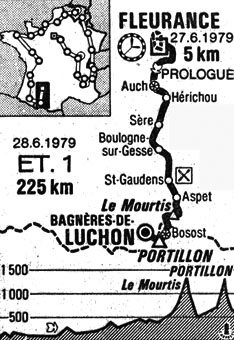 - La mise en route est assez prudente hormis une animation en vue du premier point "rush" à Auch (km 55). Le sprint est enlevé par Tesnière devant Villemiane. Il n'y a plus rien à signaler jusqu'au ravitaillement de Saint-Gaudens (km 139). A la suite d'un accrochage avec Sanders et Esparza, Rik Van Linden reste à terre et doit monter dans l'ambulance.