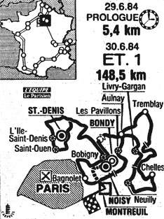 - Sur sa lancée, Ludo Peeters prend des bonifications : 12" de bonifications au 1er sprint "Catch" de Neuilly-Plaisance (km 43), le souvenir Antonin-Magne à Livry-Gargan (km 53.5), 12" supplémentaires au 2ème sprint de Pavillons-sous-Bois (km 62.5). Son avance maximale sur le peloton est de 5'02" à Sevran (km 55) où Vincendeau est intercalé à 3'16". Le Vendéen sera rejoint après le ravitaillement de Bagnolet (km 75).