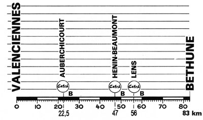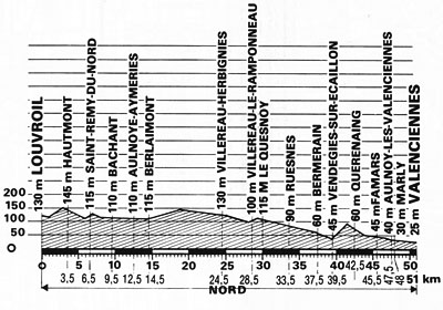 9h51 (Nord) : Louvroil / Av. Montfort) (km 0) - Hautmont (km 3.5) - Saint-Rémy-du-Nord (km 6.5) - Bachant (km 9.5) - Aulnoye-Aymeries (km 12.5) - D951 Berlaimont (kml 14.5) - Villereau-Herbignies (km 24.5) - Villereau-le-Ramponneau (km 28.5) - Le Quesnoy (km 30) - Ruesnes (km 33.5) - Bermerain (km 37.5) - Vendegies-sur-Ecaillon (km 39.5) - Quénéraing (km 42.5) - Famars (km 45.5) - Aulnoy-lez-Valenciennes (km 47.5) - Marly (km 48) - Valenciennes / rue des Glacis (km 51).